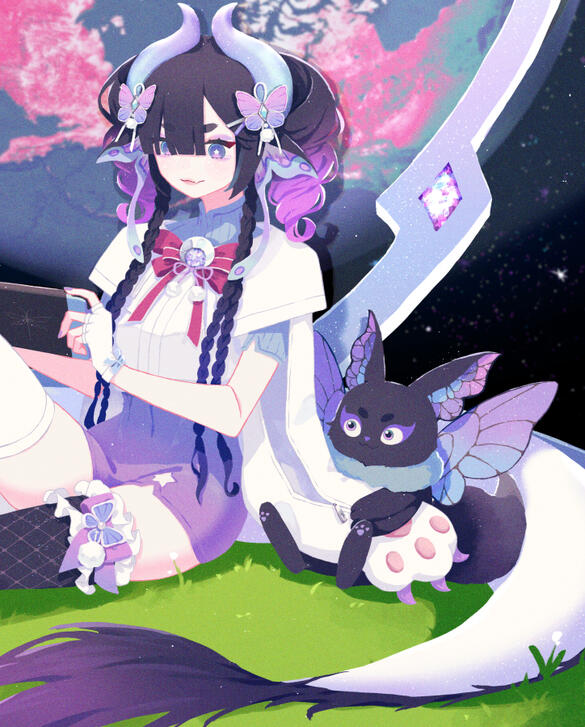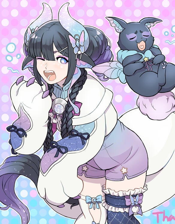 FemaleA curious spirit born from the stardust of a wishing star at some unknown time. Every so often, she reverts to a slime form and reincarnates. Her current body is that of a dragon girl with ears resembling butterfly wings. She's very curious about humans and is obsessed with human made entertainment.